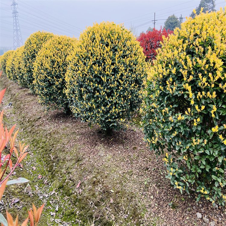 金禾女貞球造型優美,適合作為造景點綴使用也可以作為叢植彩帶灌木使用,以及灌木隔離帶等,相關類似可以交替使用的品種還有金葉女貞、小葉女貞、亮晶女貞球、大葉黃楊小葉黃楊、萬年青、金邊黃楊、紅葉石楠球、紅花繼木等一些長勢旺盛,姿態優美的灌木。